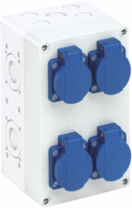Spelsberg STG cee-contactdoos combinatie, grijs, (dxbxh) 122x125x200mm, voeding/aansluitmogelijkheid 1 leiding (aftakleiding), beschermingsgraad (IP) IP44, 4 contactdozen met randaard, behuizing kunststof, hantering wandmontage