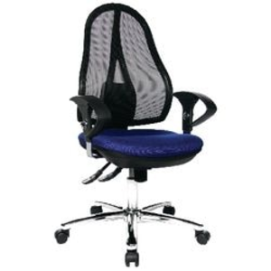 Topstar operator stoel Open Point Deluxe. Geweldig design gecombineerd met ergonomische functies. Met synchro-mechanisme en instelbare armsteunen. Wielen voor zachte vloer. Afmetingen (B x D x H): 48 x 48 x 43-51 cm. Materiaal: Mesh. Kleur: zwart, blauw.