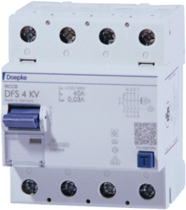 Doepke aardlekschakelaar, 4 polen, type lekstroom A, DIN-rail, nom. (meet)stroom 16A, nom. foutstroom 0.3A, kortstondigvertraagd type, aansluitbare geleiderdoorsnede eend 1.5 - 50mm², nevenapparaat mogelijk, kortsluitvastheid (Icw) 10kA, frequentie 50Hz, beschermingsgraad (IP) IP20,