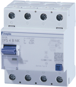 Doepke aardlekschakelaar, 4 polen, type lekstroom B, DIN-rail, nom. (meet)stroom 63A, nom. foutstroom 0.3A, kortstondigvertraagd type, aansluitbare geleiderdoorsnede eend 1.5 - 50mm², nevenapparaat mogelijk, kortsluitvastheid (Icw) 10kA, frequentie 50Hz, beschermingsgraad (IP) IP20,