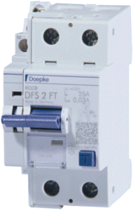 Doepke aardlekschakelaar met nevenapparaat, 2 polen, nom. (meet)spanning 230V, nom. (meet)stroom 100A, nom. foutstroom 500mA, DIN-rail, type lekstroom A, kortsluitvastheid (Icw) 10kA, nom. afschakelvermogen 1kA, stootstroomvastheid 0.25kA, frequentie 50Hz, nevenapparaat geïntegreerd overig,