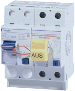 Doepke aardlekschakelaar met nevenapparaat, 2 polen, nom. (meet)spanning 230V, nom. (meet)stroom 25A, nom. foutstroom 300mA, DIN-rail, type lekstroom A, kortsluitvastheid (Icw) 10kA, nom. afschakelvermogen 0.5kA, stootstroomvastheid 0.25kA, frequentie 50Hz, nevenapparaat geïntegreerd overig,