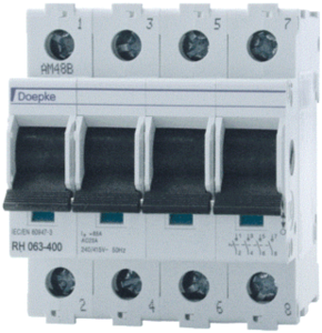 Doepke lastscheider, apparaatbouwvorm compleet apparaat in behu, vergrendelbaar, nom. continustroom Iu 40A, 4 polen, beschermingsgraad frontzijde (IP) IP20, bedieningselement zwart, geschikt voor verdelerinbouw, bedrijfsspanning (meetspanning) 240 - 415V,
