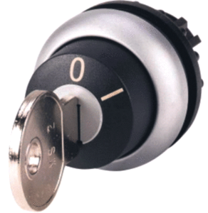Eaton Industries RMQ M22 keuzeschakelaar frontelement, uitvoering van het bedieningselemen sleutel, schakelfunctie vergrendelend, frontrand titanium, bedieningselement zwart, 2 schakelstanden, gatdiameter 22.5mm, bouwvorm lens rond, signaallampkapje overig, beschermingsgraad frontzijde (IP) IP66,