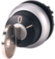 Eaton Industries RMQ M22 keuzeschakelaar frontelement, uitvoering van het bedieningselemen sleutel, schakelfunctie vergrendelend, frontrand titanium, bedieningselement zwart, 2 schakelstanden, gatdiameter 22.5mm, bouwvorm lens rond, signaallampkapje overig, beschermingsgraad frontzijde (IP) IP66,
