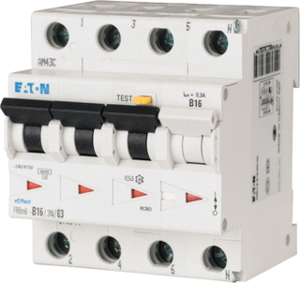Eaton Industries XEffect aardlekautomaat, uitschakelkarakteristiek C, type lekstroom A, meeschakelende nul, nom. (meet)stroom 16A, nom. foutstroom 0.03A, afschakelkarakteristiek onvertraagd, breedte in module-eenheden 4, 4 polen (totaal), nom. kortsluitafschakelvermogen Icn 6kA, spanningstype AC,