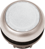 Eaton Industries RMQ M22 drukknop frontelement, geschikt voor verlichting, knop blauw, bouwvorm lens rond, terugverend, frontrand titanium, type knop vlak/plat, gatdiameter 22.5mm, frontrand kunststof, uitvoering signaaldrukknop, beschermingsgraad frontzijde (IP) IP67/IP69K,