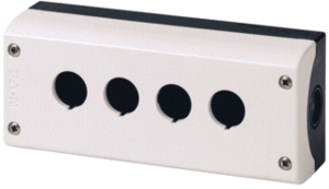 Eaton Industries RMQ M22 drukknopkast leeg, (bxdxh) 186x80x56mm, behuizing kunststof, bovendeel behuizing grijs, 4 commandoposities, bouwvorm behuizing opbouwbehuizing, beschermingsgraad (IP) overig, beschermingsgraad (NEMA) overig, doorsnede opening 22.5mm,