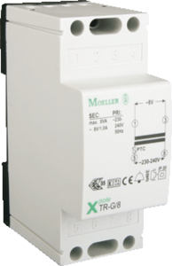Eaton Industries TR G beltransformator, (bxhxl) 36x90x55mm, modulaire uitvoering (voor railmont, secundaire spanning 1 8V, secundaire stroomsterkte 1 1A, type transformator standaard beltrafo, breedte in module-eenheden 2, kortsluitbeveiliging, opbouw (stucwerk), primaire spanning 230V,