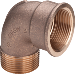 Viega Bronzen draadfittingen 3092 fitting met 2 aansluitingen 1-delig, bocht, nom. diameter aansluiting 1 1" (25), aansluiting 1 brons, nom. diameter aansluiting 2 1" (25), aansluiting 2 buitendraad conisch BSPT-, gastec QA, KIWA-keur, oppervlaktebescherming aansluiting geen (onbehandeld),