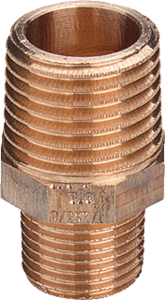 Viega Bronzen draadfittingen 3245 fitting met 2 aansluitingen 1-delig, lengte 32mm, recht, nom. diameter aansluiting 1 1/2" (15), aansluiting 1 brons, aansluiting 1 buitendraad conisch BSPT-, nom. diameter aansluiting 2 3/8" (10), aansluiting 2 buitendraad conisch BSPT-, gastec QA, KIWA-keur,