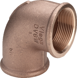 Viega Bronzen draadfittingen 3090 fitting met 2 aansluitingen 1-delig, lengte 41.2mm, bocht, nom. diameter aansluiting 1 3/4" (20), aansluiting 1 brons, nom. diameter aansluiting 2 3/4" (20), aansluiting 2 binnendraad cilindrisch B, gastec QA, KIWA-keur,