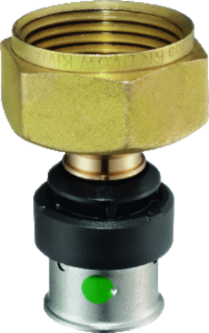 Viega Smartpress 6763 fitting met 2 aansluitingen 2-delig, recht, uitwendige buisdiameter aansluiting 20mm, nom. diameter aansluiting 1 DN 15, aansluiting 1 persmof, nom. diameter aansluiting 2 3/4" (20), aansluiting 2 wartelmoer, KIWA-keur, oppervlaktebescherming aansluiting geen (onbehandeld),