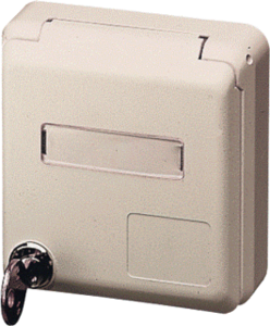 Mennekes wandcontactdoos (wcd schakelmat.), wit, uitvoering contactdoos CEE 7/3 (type, aardcontact randaarde clips, 2 actieve contacten (rond), 1 eenheid, met klapdeksel, tekstveld/beschrijvingsvlak, RAL-nummer 1013, transparant, afsluitbaar