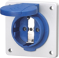 Mennekes toestelcontactdoos geaard, kunststof, blauw, uitvoering contactdoos CEE 7/3 (type, nom. spanning 230V, 2 polen, nom. stroom 16A, aansluittechniek schroefloze klem, insteekrichting recht, halogeenvrij, kwaliteitsklasse thermoplast, flensmaat 75x75mm, met klapdeksel,