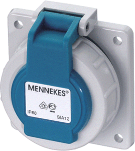 Mennekes wandcontactdoos (wcd schakelmat.), blauw, uitvoering contactdoos CEE 7/3 (type, 1 eenheid, 1 modules (bij modulair sys, aansluitwijze schroefklem, met klapdeksel, RAL-nummer 5007