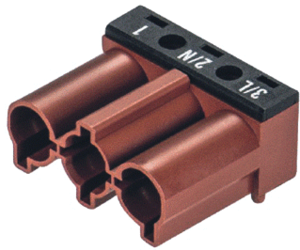 Wieland GST18i3 conn. v insteekbare gebouwinstall., (hxbxl) 13x28.2x24mm, 3 polen, halogeenvrij, behuizing polyamide (PA), beschermingsgraad (IP) IP20, contactmateriaal cuZn, uitvoering stekker (Male), codering/contactinzetstuk bruin, mechanische codering, 1 aansluitingen per pool,