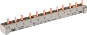 Abb System pro M compact PS kamrail L1+N/L2+N/L3+N, grijs, lengte 212mm, diameter 10mm², geïsoleerd, uitvoering elektrische aansluiting pen, 12 polen, delingsmaat 17.5mm, geschikt voor apparaten met nulgele, 4 fasen, nom. continustroom Iu 63A, max. nom. bedrijfsspanning Ue 400V,