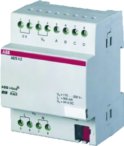Abb Busch-Jaeger I-Bus KNX analoge ingang bussysteem, 4 ingangen, beschermingsgraad (IP) IP20, breedte in module-eenheden 4, busaansluiting incl., bussysteem KNX, DRA (DIN-rail adapter), spanningssturing, stroomsturing, uitvoering basismodule