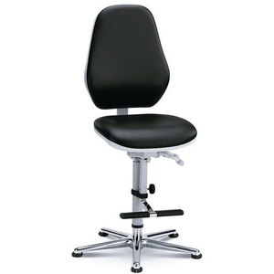 Werkplaatsstoel voor steriele ruimte Basic, op glijders_Bimos, Type voet: Stoeldoppen, Zitting materiaal: Imitatieleer, Stoel model: Hoog, Voetensteun: ja, Min. zithoogte: 640 mm, Max. zithoogte: 890 mm, Kleur: Zwart, Zitbreedte: 460 mm, Zitdiepte: 44 cm, Rughoogte: 530 mm, Recyclebare verpakking: Ja - 100%, Gerecyclede verpakkingen: 80 %, Gerecycled product: 54 %, Eco-verantwoordelijke aanpak: ja, Model: Werkplaatsstoel voor steriele ruimtes Basic