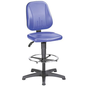 Werkplaatsstoel Unitec op glijders, met voetensteun_Bimos, Type voet: Stoeldoppen, Zitting materiaal: Imitatieleer, Stoel model: Hoog, Voetensteun: ja, Min. zithoogte: 580 mm, Max. zithoogte: 850 mm, Kleur: Blauw, Zitbreedte: 460 mm, Zitdiepte: 47 cm, Rughoogte: 460 mm, Recyclebare verpakking: Ja - 100%, Gerecyclede verpakkingen: 80 %, Gerecycled product: 55 %, Eco-verantwoordelijke aanpak: ja, Model: Werkplaatsstoel Unitec