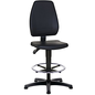 Werkplaatsstoel ErgoSupport op wielen of glijders, Met armleggers: nee, Type voet: Stoeldoppen, Zitting materiaal: Polyurethaan, Stoel model: Hoog, Voetensteun: ja, Min. zithoogte: 570 mm, Max. zithoogte: 840 mm, Kleur: Zwart, Zitbreedte: 440 mm, Zitdiepte: 410 mm, Rugbreedte: 440 mm, Rughoogte: 520 mm, Onderstel materiaal: Polyamide, Asynchroontechniek: ja, Recyclebare verpakking: Ja - 100%, Gerecyclede verpakkingen: 80 %, Gerecycled product: 55 %, Eco-verantwoordelijke aanpak: ja, Rughoogte-instelling: ja, Max. steungewicht: 120 kg, Permanent contact: ja, Instelbare lendensteun: ja, Zithoogte verstelling: ja