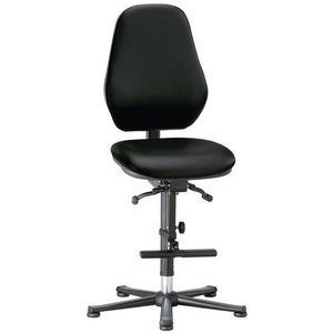 Werkplaatsstoel Laboratoire Basic op glijders, met voetensteun_Bimos, Type voet: Stoeldoppen, Zitting materiaal: Imitatieleer, Stoel model: Hoog, Voetensteun: ja, Min. zithoogte: 620 mm, Max. zithoogte: 870 mm, Kleur: Zwart, Zitbreedte: 460 mm, Zitdiepte: 44 cm, Rughoogte: 530 mm, Recyclebare verpakking: Ja - 100%, Gerecyclede verpakkingen: 80 %, Gerecycled product: 52 %, Eco-verantwoordelijke aanpak: ja