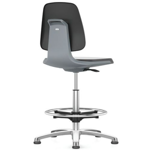 Werkplaatsstoel Labsit op glijders, met voetensteun_Bimos, Type voet: Stoeldoppen, Zitting materiaal: Polyurethaan, Stoel model: Hoog, Voetensteun: ja, Min. zithoogte: 520 mm, Max. zithoogte: 770 mm, Kleur: Antraciet, Zitbreedte: 460 mm, Zitdiepte: 42 cm, Rughoogte: 420 mm, Gewicht: 11.5 kg, Recyclebare verpakking: Ja - 100%, Gerecyclede verpakkingen: 80 %, Gerecycled product: 54 %, Eco-verantwoordelijke aanpak: ja, Model: Volledige schuimrubberen bekleding