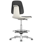 Werkplaatsstoel Labsit op glijders, met voetensteun_Bimos, Type voet: Stoeldoppen, Zitting materiaal: Imitatieleer, Stoel model: Hoog, Voetensteun: ja, Min. zithoogte: 520 mm, Max. zithoogte: 770 mm, Kleur: Wit, Zitbreedte: 460 mm, Zitdiepte: 42 cm, Rughoogte: 420 mm, Gewicht: 11.5 kg, Recyclebare verpakking: Ja - 100%, Gerecyclede verpakkingen: 80 %, Gerecycled product: 54 %, Eco-verantwoordelijke aanpak: ja
