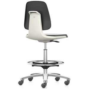 Werkplaatsstoel Labsit, zelfremmende wielen, voetensteun_Bimos, Type voet: Wielen, Zitting materiaal: Imitatieleer, Stoel model: Hoog, Voetensteun: ja, Min. zithoogte: 560 mm, Max. zithoogte: 810 mm, Kleur: Wit, Zitbreedte: 460 mm, Zitdiepte: 42 cm, Rughoogte: 420 mm, Gewicht: 11.5 kg, Recyclebare verpakking: Ja - 100%, Gerecyclede verpakkingen: 80 %, Gerecycled product: 54 %, Eco-verantwoordelijke aanpak: ja