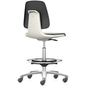 Werkplaatsstoel Labsit, zelfremmende wielen, voetensteun_Bimos, Type voet: Wielen, Zitting materiaal: Polyurethaan, Stoel model: Hoog, Voetensteun: ja, Kleur: Wit, Gewicht: 11.5 kg, Recyclebare verpakking: Ja - 100%, Gerecyclede verpakkingen: 80 %, Gerecycled product: 54 %, Eco-verantwoordelijke aanpak: ja, Model: Volledige schuimrubberen bekleding
