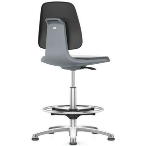 Werkplaatsstoel ESD Labsit, op glijders_Bimos, Type voet: Stoeldoppen, Zitting materiaal: Imitatieleer, Stoel model: Hoog, Voetensteun: ja, Kleur: Zwart, Recyclebare verpakking: Ja - 100%, Gerecyclede verpakkingen: 80 %, Gerecycled product: 54 %, Eco-verantwoordelijke aanpak: ja, Model: Werkplaatsstoel ESD Labsit