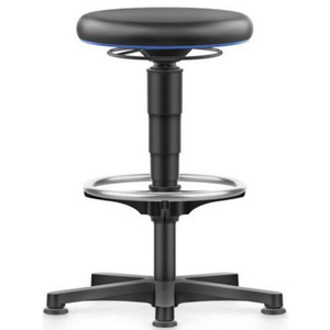 Kruk allround, Type onderstel: 5 poten, Stoel model: Hoog, Voetensteun: ja, Zitbreedte: 400 mm, Zitdiepte: 400 mm, Zitting materiaal: Imitatieleer, Onderstel materiaal: Polypropyleen, Zitting Ø: 400 mm, Min. zithoogte: 560 mm, Max. zithoogte: 830 mm, Kleur: Blauw Zwart, Onderstel kleur: Zwart, Max. hoogte: 830 mm, Type voet: Stoeldoppen, Max. steungewicht: 120 kg, Zitneiginstelling: ja, Zithoogte verstelling: ja, Zitting kleur: Zwart