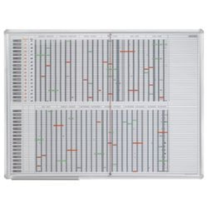 Franken Jaarplanner JPC1235. Tijdschema: 12 maanden. Magnetisch en beschrijfbaar, voor 35 posities. Inclusief: 20 magnetische naambadges (10 x 50 mm), 2 m gekleurde magnetische banden (5 mm breed), elk 1 m in rood en groen, magnetische datumgroef om de huidige dag te identificeren, 1 boardmarker, 1 FineMarker, 3 magneten. Afmetingen: 90 x 120 cm (HxB). Kleur: wit.