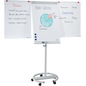 Franken flipchart Pro Mobil Plus FC24R. Beschrijfbare Magneetbord. Met de monopod en ronde basis. Handmatige hoogteverstelling, gemakkelijk instellen. Lade beschikbaar. Afmetingen (W x H): 68 x 104.5 cm. gewicht: 18 kg. Kleur: grijs.