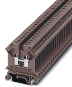 Phoenix Contact verbindingsrijgklem, bruin, (bxhxd) 6.15x42.52x45.9mm, brandbaarheidsklasse isolatiemateri V0, nom. (meet-)stroom In 32A, uitvoering elektrische aansluiting schroefaansluiting, DIN-rail 35mm, afsluitplaat noodzakelijk, aansluitbare geleiderdoorsnede fijn 0.2 - 4mm²,