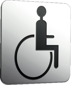Emco System 2 pictogram sanitaire ruimte, roestvaststaal (RVS), (lxb) 2x100mm, symbool mindervaliden, zelfklevend, met bevestigingsmateriaal, vierkant