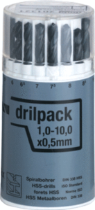 Cimco borenset, diameter 1 - 10mm, opnamesysteem cilindrische insteekas, snijmateriaal HSS, snijrichting links, 19 boren voor RVS, 19 boren voor kunststof, 19 boren voor non-ferro meta, 19 boren voor staal, totaal aantal gereedschappen 19, verpakking kunststof box