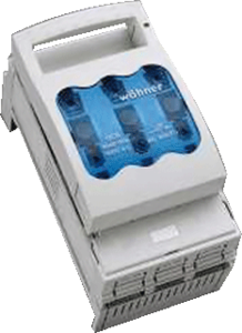 Wohner QUADRON patroonlastscheider, bouwgrootte zekeringsinzetstukken NH00, uitrusting patroonlastscheider met lastscheider, nom. bedrijfsstroom Ie 160A, 3 polen, beschermingsgraad (IP) IP20, beschermingsgraad (NEMA) overig, bovenaansluiting, breedte behuizing 106mm, contactonderbreking dubbel,