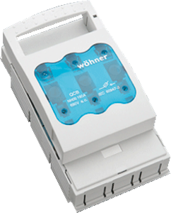 Wohner QUADRON patroonlastscheider, bouwgrootte zekeringsinzetstukken NH00, uitrusting patroonlastscheider met lastscheider, nom. bedrijfsstroom Ie 160A, 3 polen, beschermingsgraad (IP) IP20, beschermingsgraad (NEMA) overig, bovenaansluiting, breedte behuizing 106mm, contactonderbreking dubbel,