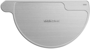 Rheinzink M400 Blue grey kopschot dakgoot, grijs, diepte 220mm, diameter 192mm, dikte 0.8mm, ontwikkelde gootbreedte 400mm, goot zink, montagezijde rechts, mastgoot (halfrond), KOMO-keur, rethink