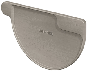 Rheinzink M400 Graphite grey kopschot dakgoot, grijs, diepte 220mm, diameter 192mm, dikte 0.7mm, ontwikkelde gootbreedte 400mm, goot zink, montagezijde rechts, mastgoot (halfrond), KOMO-keur, rethink