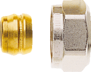 Heimeier 3800 knelringset, uitwendige buisdiameter 15mm, draadaansluiting binnendraad, knelring messing, kwaliteitsklasse overig, geschikt voor wanddikte 1mm, wartelmoer messing, oppervlaktebescherming wartelmoer vernikkeld, geschikt voor stalen buis, geschikt voor koperen buis,