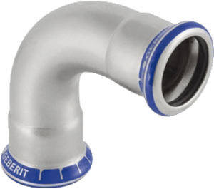 MAPR.RVS BOCHT 90GR 22MM - GEB fitt m/2 aansl 1-del Mapress RVS, le 122mm, bocht