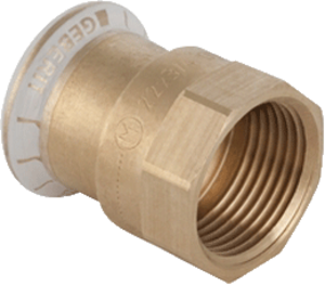 Geberit Mapress Brons fitting met 2 aansluitingen 1-delig, lengte 39mm, recht, uitwendige buisdiameter aansluiting 22mm, nom. diameter aansluiting 1 DN 20, aansluiting 1 brons, aansluiting 1 persmof, nom. diameter aansluiting 2 3/4" (20), aansluiting 2 binnendraad cilindrisch B, KIWA-keur,