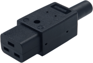 Martin Kaiser 763 C19 apparaatstekker/contactdoos, kunststof, zwart, uitvoering koppeling, standaard C19, kabelinvoer recht, 3 polen, beschermingscontact busaarde, beschermingsgraad (IP) IP20, max. bedrijfstemperatuur 70°C, met trekontlasting, met tule, nom. spanning 250V, nom. stroom 16A, slagvast