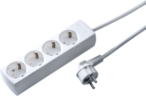 Martin Kaiser 1048 contactdooscombinatie, kunststof, wit, 4 randaarde-contactdozen, behuizingsvorm rechthoekig, stekerstand gedraaid, lengte snoer 3m, beschermingsgraad (IP) IP20, uitvoering oppervlakte mat, hoek stekerstand 45°, aderdoorsnede 1.5mm², oppervlaktebescherming geen (onbehandeld),
