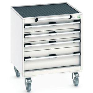 Mobiele ladekast Cubio, Totale hoogte: 780 mm, Aantal laden: 4, Totale breedte: 650 mm, Totale diepte: 650 mm, Kleur: Lichtgrijs, Totale hoogte lade: 3 x 100 ; 1 x 200 mm, Kleur ombouw: Lichtgrijs, Max. belasting per lade: 50 kg, Max. belasting: 300 kg, RAL: 7035, Zwenkwiel Ø: 125 mm, Special Covid-19: nee, Aantal legborden: 0, Aantal zwenkwielen: 4, Recyclebare verpakking: Ja - 100%, Gerecyclede verpakkingen: 93 %, Gewicht: 70.6 kg, Type nr.: 40402023.16V, Lade kleur: Lichtgrijs