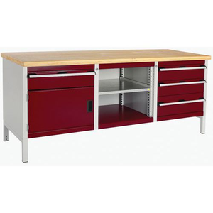 Werkbank beuken Cubio, Totale hoogte: 840 mm, Totale breedte: 2000 mm, Werkbank blad materiaal: Beuk multiplex, Breedte: 2000 mm, Diepte: 750 mm, Totale diepte: 750 mm, Frame kleur: Lichtgrijs, Hoogte: 840 mm, Werkhoogte: 840 mm, Dikte tafelblad: 40 mm, Aantal laden: 4, Aantal legborden: 0, Hoogte lade: 3 x 150 ; 1 x 200 mm, Aantal deuren: 1, Kleur: Rood, Kleur deur: Rood, Lade kleur: Rood, RAL: 3004, Max. belasting lade: 75 kg, Special Covid-19: nee, Recyclebare verpakking: Ja - 100%, Gerecyclede verpakkingen: 93 %, Gewicht: 147 kg, Diepte tafelblad: 750 mm