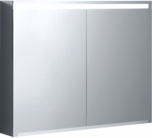 Geberit OPTION wastafel spiegelkast, (hxbxd) 700x900x150mm, uitvoering met frontspiegel, 2 deuren (totaal), 1 deuren linksdraaiend, 1 deuren rechtsdraaiend, corpus spaanplaat, front glas, corpus overig, uitvoering handgreep geïntegreerd, soft-close systeem, met verlichting bovenzijde,